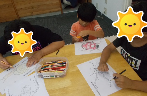なかなかお店に売っていなリアルな虫のぬり絵に興味津々。