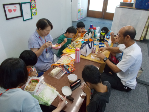 学校がお休みの日の恒例行事の1つが、みんなで机を囲んで食べる昼食です。