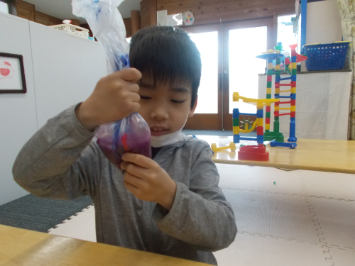 しかし、絵具の数が限られていた為、紫がないことに気づくと・・・