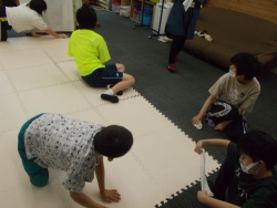 船にみんなで乗ったり、ボールを使ったりして体を動かして遊びました。