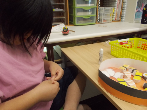 ハサミを様々な方向に動かしながら切ったり、とても細かい場所にのりを塗ったりして完成させていました。