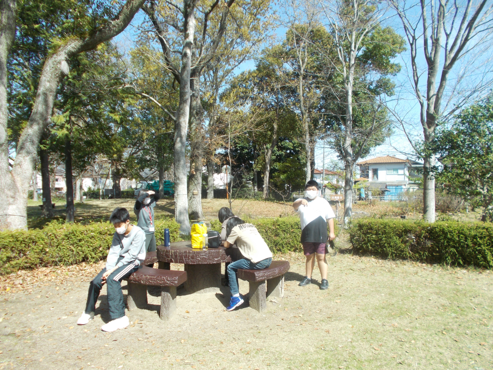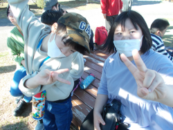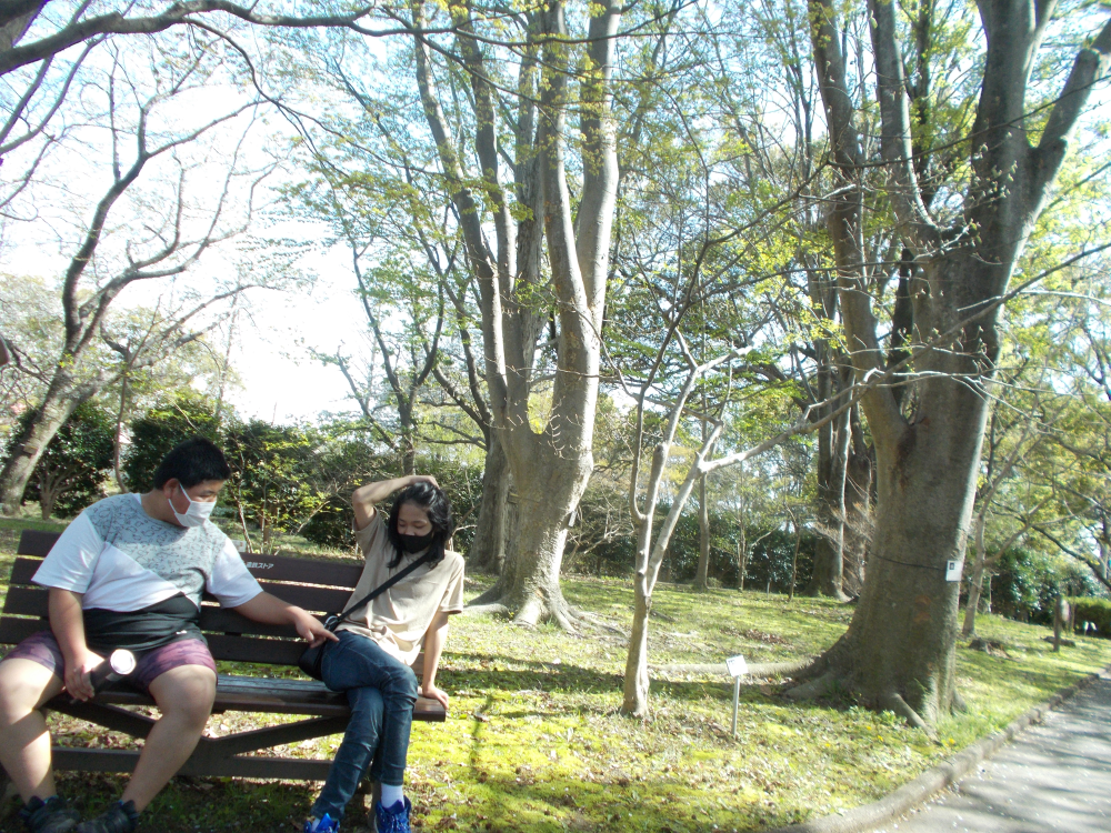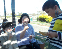 園内を散策したり、青空の下でみんなでおやつを食べました。