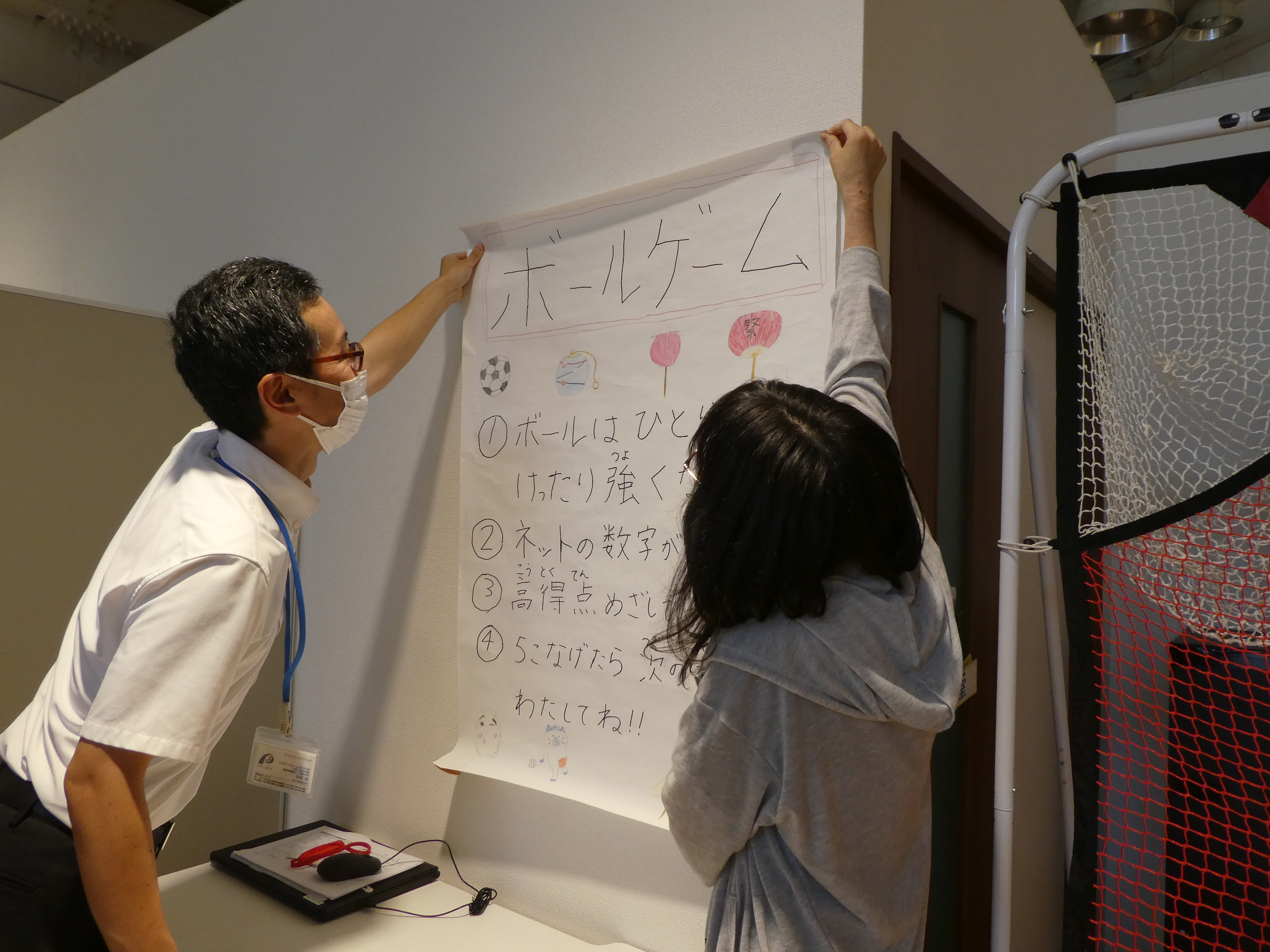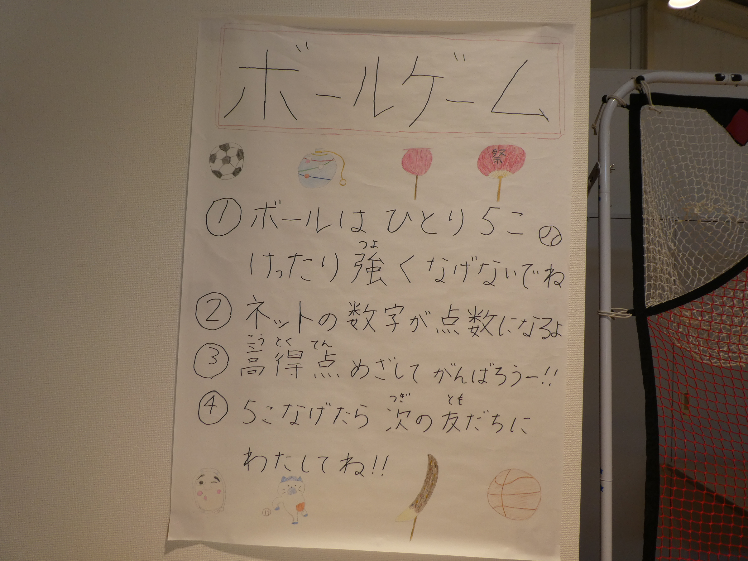 ゲーム説明の掲示物のイラストは利用者様が描いてくださいました。