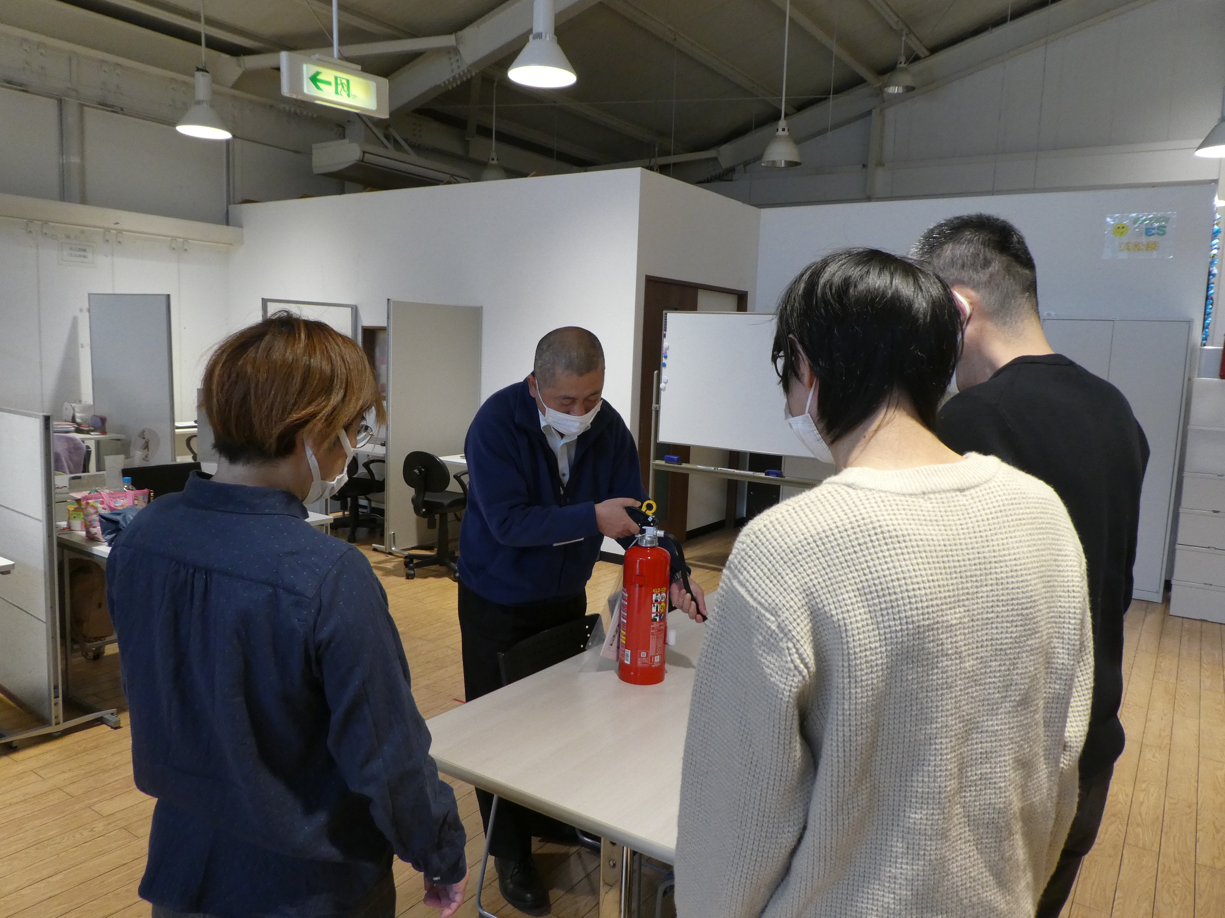 SESに戻ってから消火訓練として消火器の使い方の読み合わせをしました。